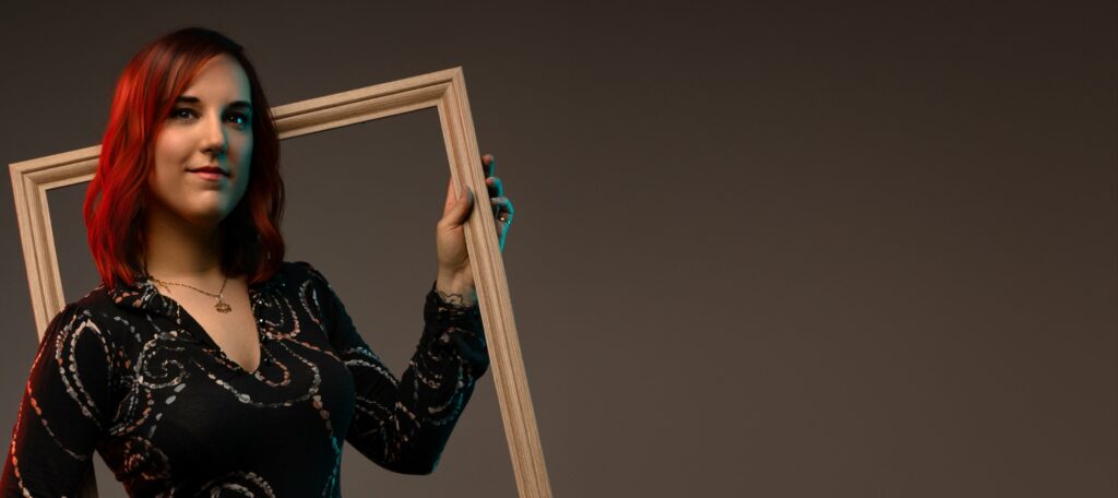 Portrait artistique en noir et blanc d'une femme, mettant en valeur le style pop art.